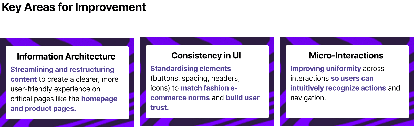 This audit helped us identify key areas of improvement, particularly in design consistency and overall usability.