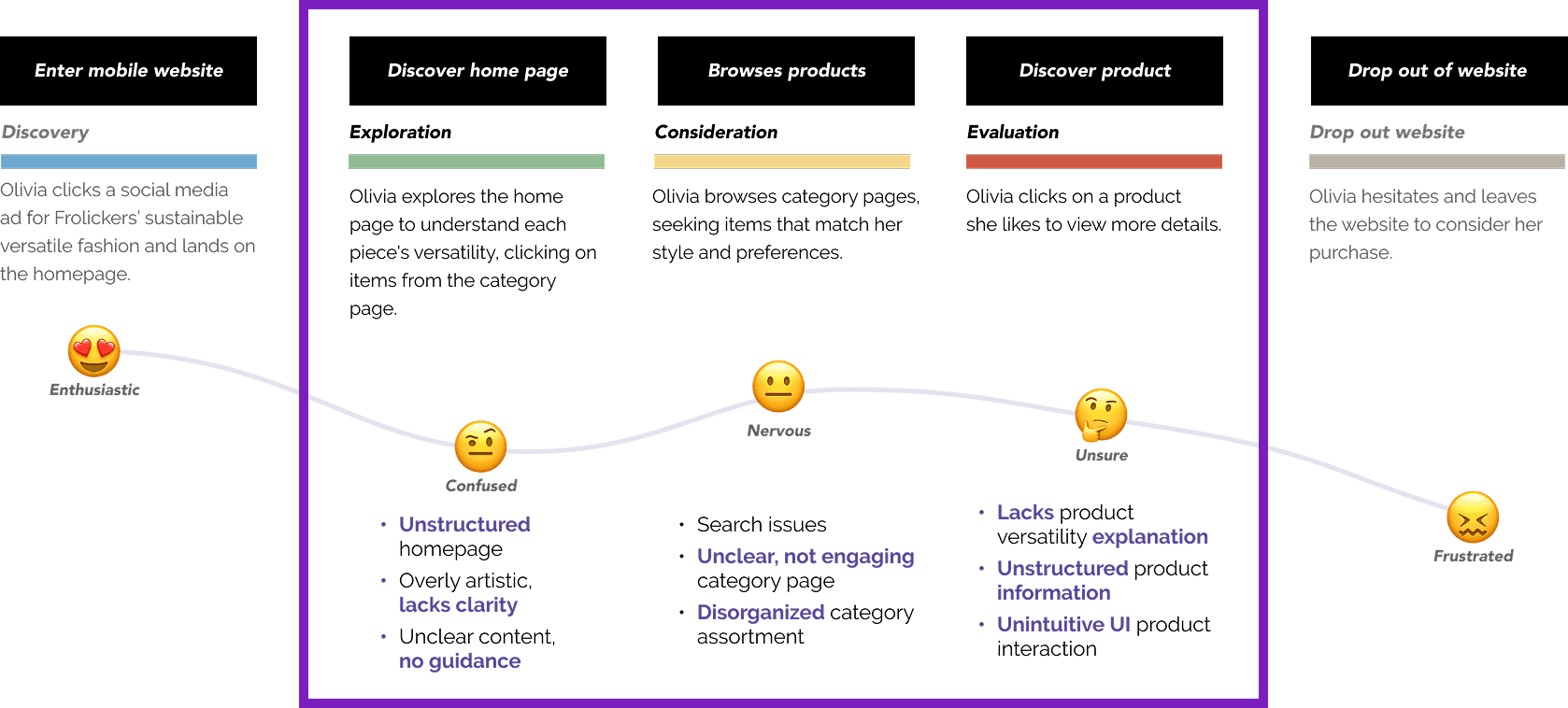 By diving into user research, competitor analysis, site audits, empathy maps as well as stakeholder interviews, we identified usability gaps and friction points, uncovering key opportunities to create a more seamless and intuitive shopping experience.