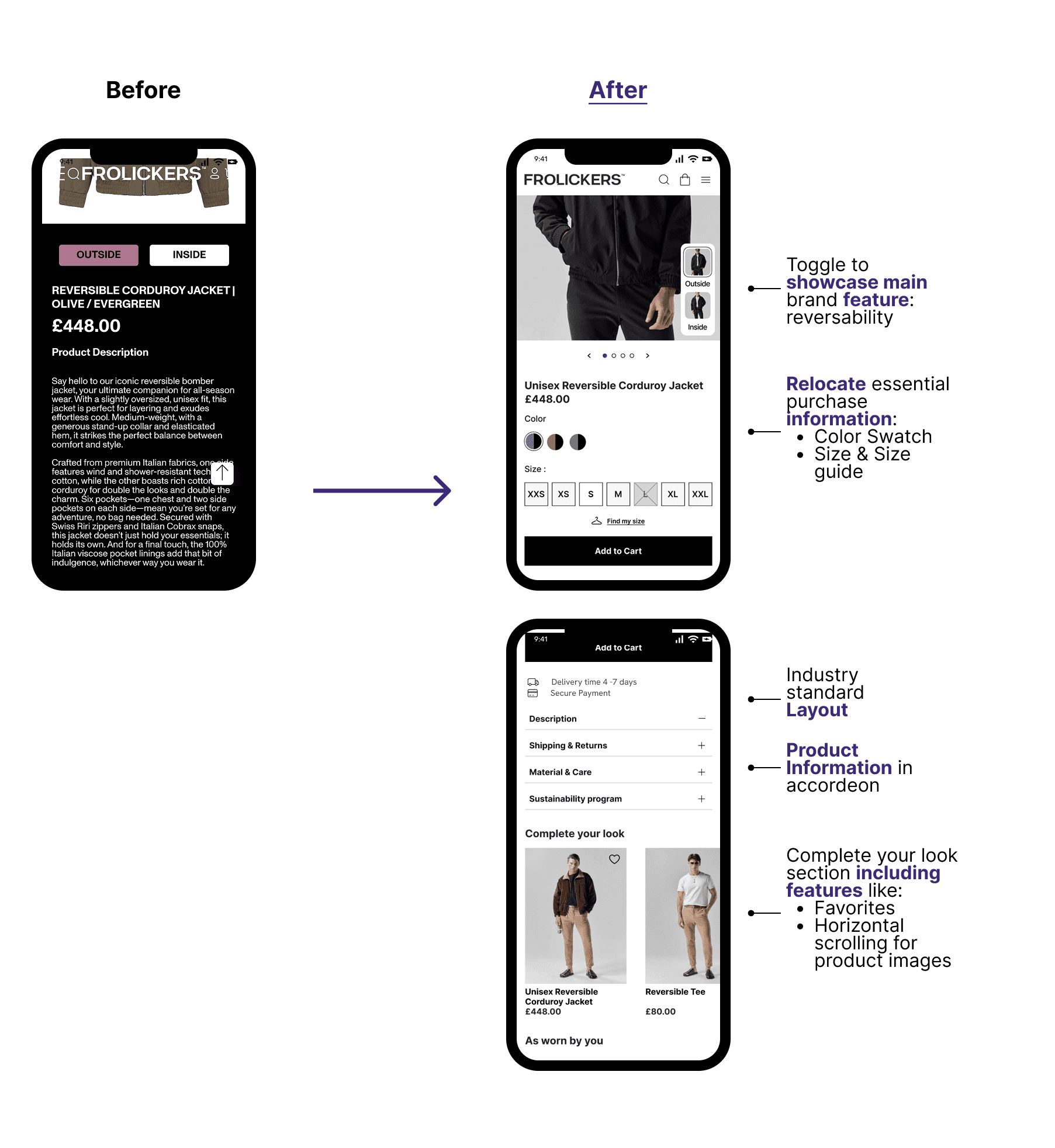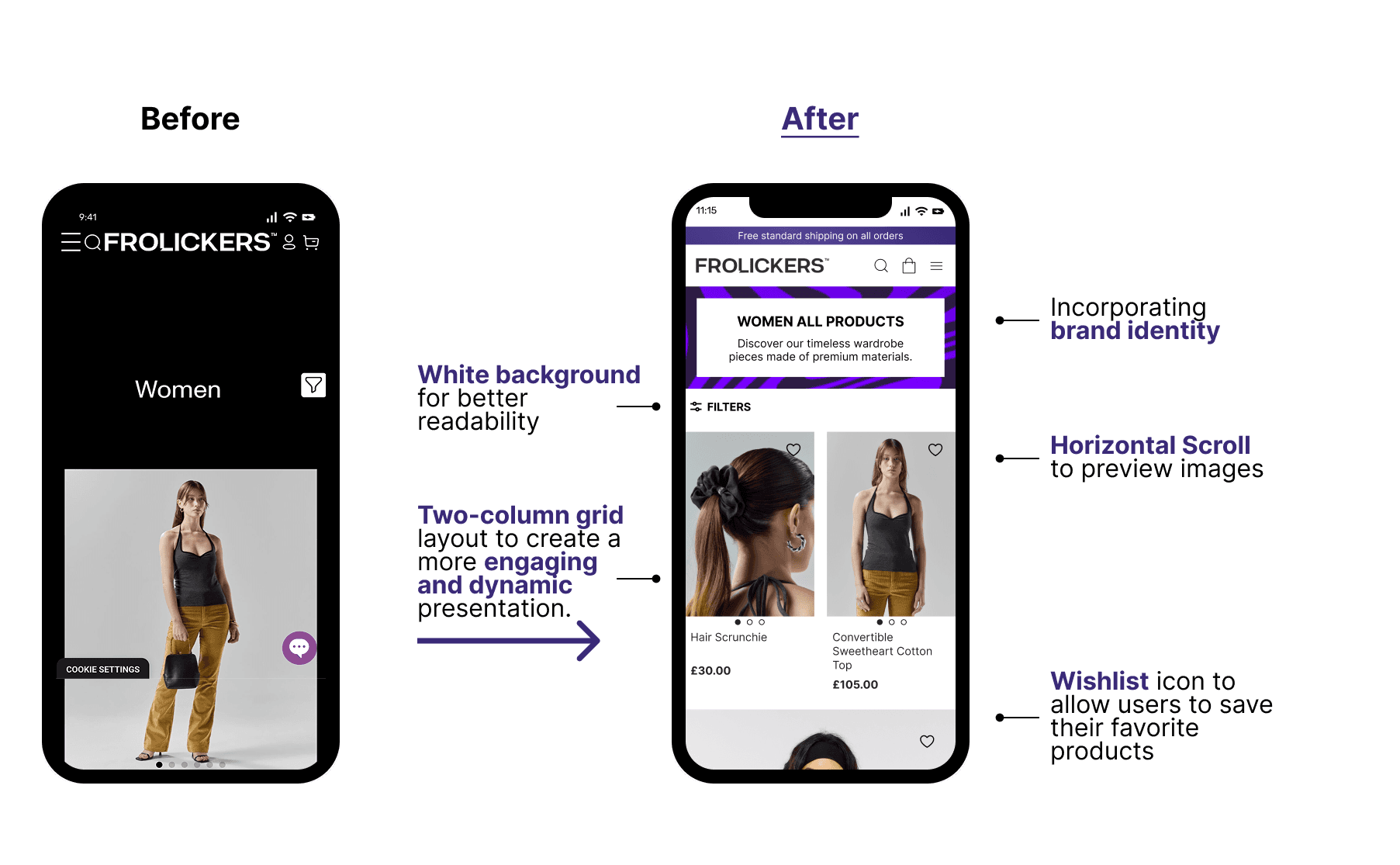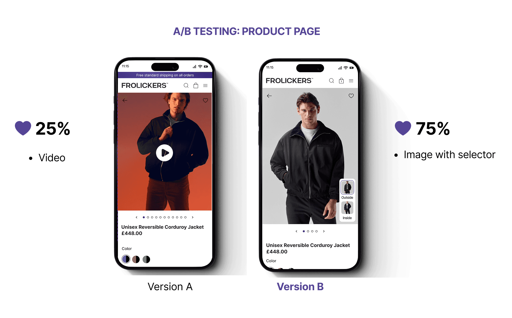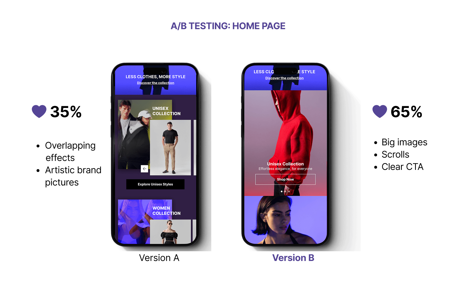 We focused on the user by testing two different layouts for the homepage and product page through A/B testing to identify which design delivered the best experience.